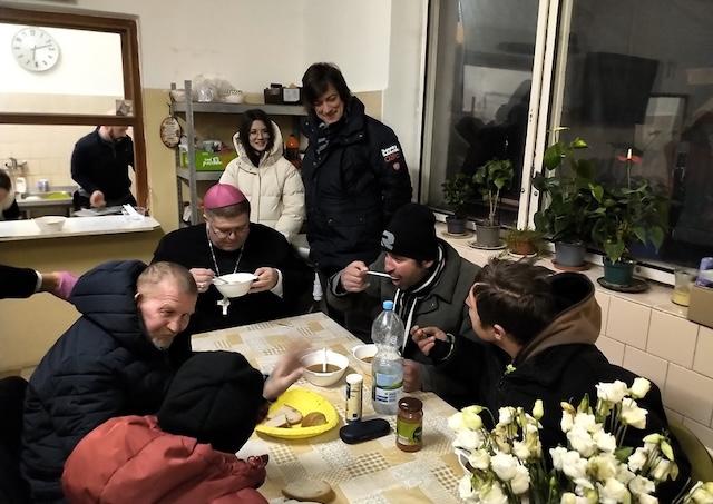 Večera pre ľudí bez domova s biskupom Petrom a dobrovoľníkmi Maltézskeho rádu