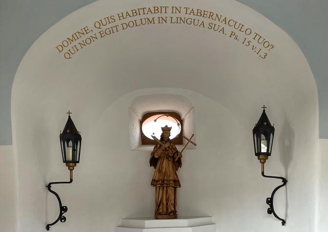 „V kaplnke boli obnovené aj dva latinské nápisy. Prvý je citát zo žalmu 15: „Pane, kto sme bývať v tvojom svätom stánku? Ten, čo nepodvádza svojím jazykom.“ Tieto verše voli zvolené zámerne kvôli osobe sv. Jána Nepomuckého, ktorý mučeníckou smrťou zachoval vernosť Bohu a neprezradil spovedné tajomstvo. Druhý nápis pozýva veriacich, aby sa stávali podobnými svätým, ktorých uctievame, čo je aktuáolne s blížiacim sa sviatkom Všetkých svätých. Som veľmi vďačný všetkým, ktorí sa podieľali na obnove tejto kaplnky. Osobitne našim farníkom, ktorí zo svojich úspor podporili obnovu kultúrnej pamiatky,“ vysvetľuje kežmarský dekan.