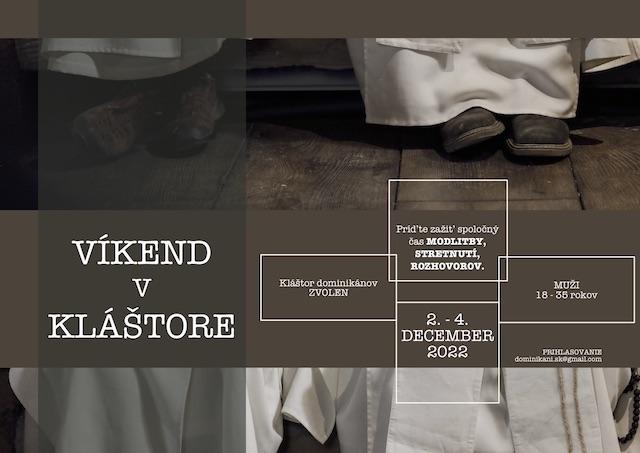Bratislava 4. novembra (TK KBS) Dominkáni vo Zvolen pozývajú mladých mužov, ktorí rozlišujú svoje povolanie, na spoločné stretnutie pod názvom Víkend v kláštore.