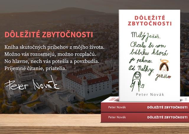 Bratislava 10. novembra (TK KBS) „Dôležité zbytočnosti“ - je názov knižnej novinky Petra Nováka, ktorý dlhodobo pôsobí v cirkevných, ako aj komerčných projektoch ako koordinátor podujatí. Kniha je „o bežných životných situáciách, stretnutiach s ľuďmi vo výťahu, na ulici, v škole či autobusom cestou do práce, ktoré som zažil či zažívam. Tak, ako aj mnohí z vás,“ hovorí Peter. Nadväzuje na prvú časť s názvom Niekedy stačí preskočiť plot.