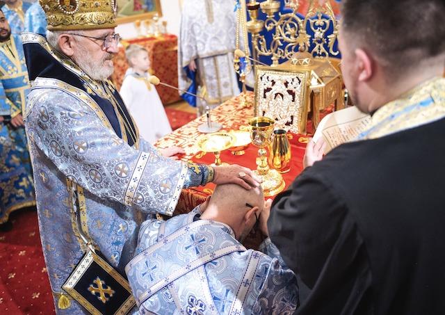 Nasledovala podstatná časť diakonskej vysviacky – rukopoloženie, počas ktorého sa vladyka Peter modlil nad hlavou svätenca modlitbu: „Božia milosť, ktorá chorých vždy uzdravuje a to, čo im chýba, dopĺňa, ustanovuje bohabojného poddiakona na diakona. Prosme, aby naň zostúpila milosť presvätého Ducha a všetci volajme: Pane, zmiluj sa.“