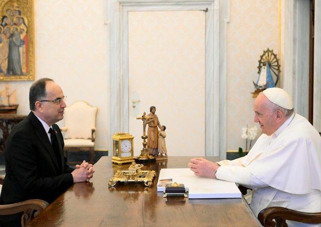Vatikán 3. decembra (RV) Pápež František v piatok 2. decembra prijal prezidenta Albánskej republiky Bajrama Begaja. Po audiencii u pápeža albánsky prezident absolvoval stretnutie so štátnym sekretárom kardinálom Pietrom Parolinom a podsekretárom Sekcie pre vzťahy so štátmi a medzinárodné organizácie Mons. Miroslawom Wachowskim.