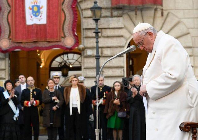 O štvrť na štyri popoludní sa Svätý Otec vybral z Vatikánu smerom k Bazilike Santa Maria Maggiore, aby sa pomodlil pri ikonou Bohorodičky, Záchrany rímskeho ľudu - Salus Populi Romani. Ďalej už jeho trasa smerovala na Španielske námestie, kde ho čakali predstavitelia mesta, zástupcovia rozličných združení a obyvatelia zhromaždení okolo mariánskeho stĺpu Immaculaty. Po speve Loretánskych litánií sa Svätý Otec obrátil na Pannu Máriu touto modlitbou: