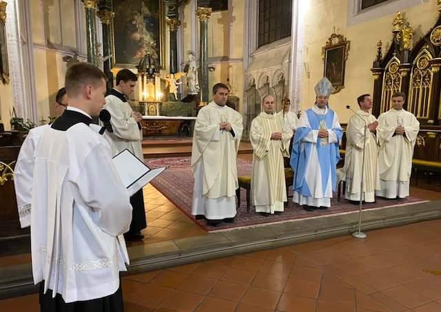 Pred svätou omšou biskup Forgáč požehnal bohoslovcom tretiakom reverendy a superpelície a bohoslovcom piatakom breviáre. Následne si tretiaci po prvýkrát obliekli reverendu. Je to ďalší malý krok na ceste ku kňazstvu. Nasledovala svätá omša, pri ktorej bol bohoslovec z tretieho ročníka Daniel Dzuriš prijatý medzi kandidátov diakonátu a kňazstva.