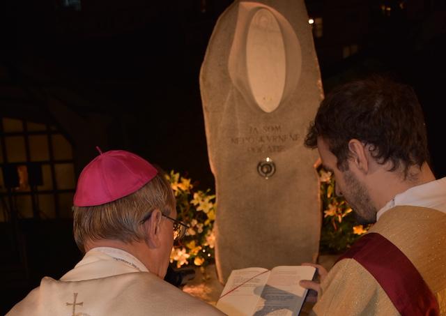 Bratislava 9. decembra (TK KBS) Ordinár Ozbrojených síl a ozbrojených zborov SR Mons. František Rábek predsedal sláveniu svätej omše v deň Slávnosti Nepoškvrneného počatia Panny Márie v Katedrále sv. Šebastiána v Bratislave. Tohtoročnému sláveniu pri eucharistickom stole so správcom miestnej farnosti sv. Jozefa, donom Jozefom Slivoňom, ako aj viacerými kňazmi ordinariátu, predchádzala významná udalosť. Biskup Rábek požehnal Lurdskú jaskyňu, ktorá je inštalovaná pred vstupom do katedrály ordinariátu.