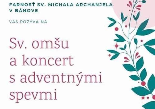 Bánov 9. decembra (TK KBS) Farnosť sv. Michala Archanjela v Bánove pozýva záujemcov o hudobné umenie na Adventný koncert, ktorý sa uskutoční v nedeľu 11. decembra 2022 v miestnom farskom Kostole sv. Michala Archanjela po svätej omši so začiatkom o 10:00d. Účinkuje Zbor kostola Kráľovnej rodiny v Bratislave.