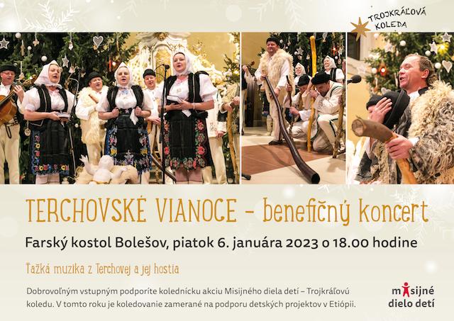 Bolešov 13. decembra (TK KBS) V piatok 6. januára 2023 o 18:00 bude benefičný koncert pod názvom „Terchovské Vianoce“. Koncert sa uskutoční vo farskom kostole v Bolešove. Na koncerte vystúpi Ťažká muzika z Terchovej a jej hostia.