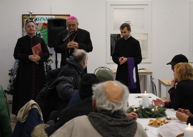 Po pietnom akte čítania mien osôb, ktoré v predchádzajúcom období odišli do večnosti, sekretár generálnych vikárov vdp. Tomáš Balala prečítal úryvok zo Svätého písma o narodení Ježiša Krista, ktorý sa tradične číta pri štedrovečernom stole a potom už nasledovala modlitba požehnania jedla, ktorú predniesol trnavský arcibiskup Ján Orosch. Chvíle spoločnej večere spríjemnila účastníkom mladá študentka hrou na akordeóne. Medzi osadenstvom prevládali muži v strednom veku, ale prišli aj staršie i mladšie ženy, ktoré zostali bez domova (Zdroje: teraz.sk/abu.sk).