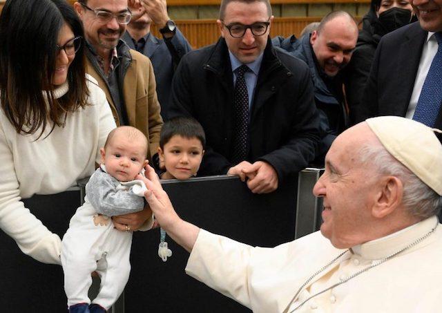 Ako Svätý Otec skonštatoval, dlhé obdobie pandémie zanechalo svoje stopy, a to nielen materiálne a ekonomické, ale zasiahlo aj do života ľudí, vzťahov, pokoja rodín. Z tohto dôvodu pápež poprial prítomným rodinám najmä pokojné sviatky: