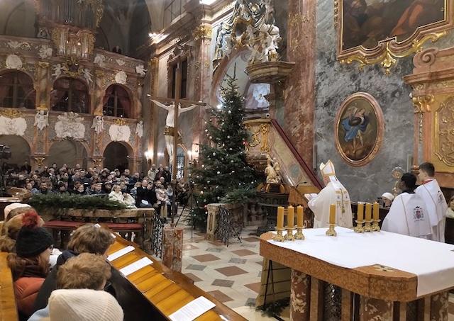 Nitra 25. decembra (TK KBS) Po dvoch rokoch prázdnoty sa Katedrála – Bazilika sv. Emeráma na Nitrianskom hrade počas tohtoročných Vianoc opäť zaplnila veriacimi bez akýchkoľvek obmedzení, ktorí sa zúčastnili vianočných liturgických slávení nitrianskeho biskupa Mons. Viliama Judáka na slávnosť Narodenia Pána 24. a 25. decembra 2022.