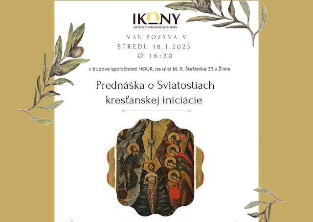 Žilina 10. januára (TK KBS) O sviatostiach kresťanskej iniciácie - je názov prednášky, s ktorou vystúpi v stredu 18. januára 2023 v Expozícii Ikony v Žiline kňaz Miroslav Klimant z Občianskeho združenia Dobrý pastier Kláštor pod Znievom, informuje Výveska.sk.
