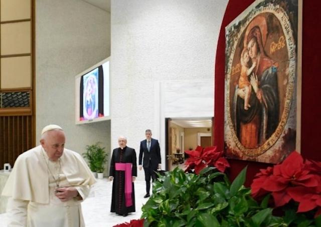 Vatikán 11. januára (VaticanNews) Počas generálnej audiencie po katechéze František pripomenul utrpenie spôsobené vojnou vo východnej Európe a pomodlil sa za mier pred ikonou Panny Márie, ktorá je na Ukrajine a v Bielorusku veľmi uctievaná. Vo svojom pozdrave poľským pútnikom pripomenul príklad Benedikta XVI.: „Nech vás jeho viera povzbudí k duchovnému rastu na základe pravdy evanjelia.“