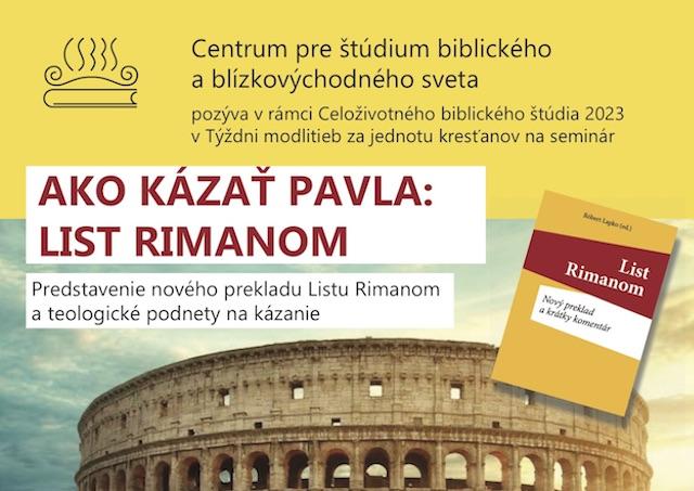 Čítanie Listu Rimanom, Pavlovho najdlhšieho a teologický najvýznamnejšieho listu, sa môže stať podnetným aj pred blížiacou sa Nedeľou Božieho Slova 2023, informoval Róbert Lapko.