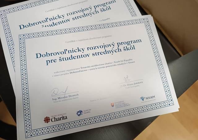 Trnava 12. januára (TK KBS) Štyridsať stredoškolákov ukončilo rozvojový dobrovoľnícky program, ktorý pre nich organizovala Trnavská arcidiecézna charita v spolupráci s mládežníckou organizáciou Youth for Eqality. Študenti sa vzdelávali, vyskúšali si dobrovoľníctvo a napokon spracovali vlastný projektový zámer.