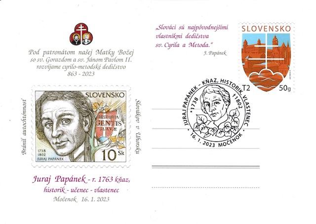 Močenok 17. januára (TK KBS) Pri príležitosti 260. výročia vysviacky Juraja Papánka za kňaza vydal Klub filatelistov 52-46 Močenok v spolupráci s Farnosťou sv. Klimenta a obcou Močenok príležitostnú poštovú pečiatku a lístok, ktoré budú na pošte v Močenku od 16. do 24. januára 2023, informoval Jozef Kútny.