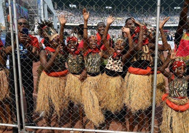 Zdá sa to byť náročná výzva. Nie je to náročné. Máte aj priateľov, ktorí vás z nebeských terás tlačia k týmto cieľom. Viete, kto sú vaši priatelia? Svätí. Mám na mysli napríklad blahoslaveného Isidora Bakanju, blahoslavenú Máriu Klementínu Anuariteovú, svätého Kizita a jeho spoločníkov: svedkov viery, mučeníkov, ktorí nikdy nepodľahli logike násilia,