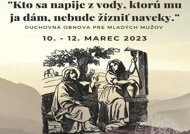 Nitra 24. februára (TK KBS) Kňazský seminár sv. Gorazda v Nitre organizuje na duchovnú obnovu pre mladých mužov v dňoch 10. - 12. 3. 2023 na tému: „Kto sa napije z vody, ktorú mu ja dám, nebude žízniť naveky.“