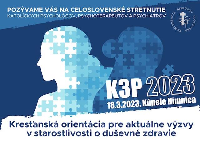 Bratislava 28. februára (TK KBS) Už po tretí raz sa na Slovensku uskutoční Celoslovenské stretnutie katolíckych psychológov, psychoterapeutov a psychiatrov (K3P). Tentokrát bude v sobotu 18. marca 2023 v Kúpeľoch Nimnica. Na jeho organizovanie sa podujalo Centrum celého človeka - ENOIA v Považskej Bystrici. Stretnutie bude pod záštitou Konferencie biskupov Slovenska.