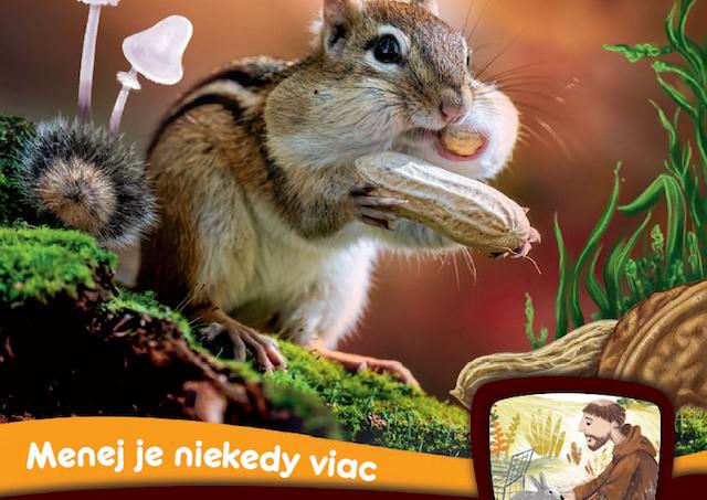 Počuli ste už o svätom Františkovi z Assisi? Mal rád prírodu a jej obyvateľov. Vedeli ste aj to, že žil svätec menom Roche, o ktorého sa staral pes? Alebo to, že svätá Gertrúda bola veľmi milá k mačkám a svätý Hubert uvidel kríž medzi parohmi jeleňa? Pripravili sme pre vás knižku plnú netradičných situácií zo života svätých, ktorí nás učia, ako sa správať k svetu okolo nás – k prírode, ľuďom i k Bohu. Knižku Svätí a príroda si môžete poskladať zo stredovej štvorstránky.