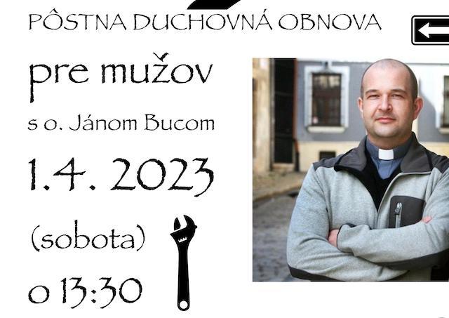 Tvrdošín 28. marca (TK KBS) Spoločenstvo mužov sv. Jozefa a Farnosť Tvrdošín pozýva na pôstnu duchovnú obnovu pre mužov s kňazom Jánom Bucom. Uskutoční sa v sobotu 1. apríla 2023 so začiatkom o 13:30 v Pastoračnom centre v Tvrdošíne.