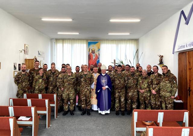 Ordinár pozdravil talianskych vojakov, pričom vyjadril úprimné poďakovanie za ich službu pre nás a uistil ich o svojej podpore. Aby sa cítili ako doma, zabezpečil policajného kaplána Ordinariátu majora Daniela Jancuska (pôsobiaceho dlhé roky v Taliansku), aby im poslúžil nasledujúcu Palmovú nedeľu spoveďou i slávením bohoslužby v talianskom jazyku ako aj slávením veľkonočnej nedeľnej bohoslužby.