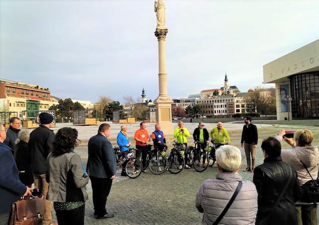 Nitra 13. apríla (TK KBS) Na 3 172 km dlhú cyklopúť z Nitry do Santiaga de Compostella po európskych trasách Svätojakubskej cesty vyrazilo 13. apríla 2023 v ranných hodinách šesť pútnikov na bicykloch aj so sprievodným vozidlom. Za účasti nitrianskeho pomocného biskupa Mons. Petra Beňa, primátora mesta Nitra Mareka Hattasa, poslancov Zastupiteľstva mesta Nitra a manželiek a známych sa s cyklopútnikmi rozlúčil a odštartoval ich na Svätoplukovom námestí od Mariánskeho stĺpu s bronzovou tabuľou Svätojakubskej cesty jej diecézny koordinátor Tibor Ujlacký.
