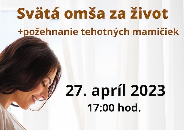 „Stretneme sa pri svätej omši za život v Uršulínskom kostole v Košiciach vo štvrtok 27. apríla 2023 o 17:00. Hosťom bude špirituál Kňazského seminára v Košiciach Peter Ceľuch. Pred začiatkom svätej omše sa so svedectvom podelia manželia Klement a Serafína Rečlovi, ktorí sú rodičmi siedmych detí. Po svätej omši kňazi udelia osobitné požehnanie tehotným mamičkám aj ich počatým deťom,“ dodal.
