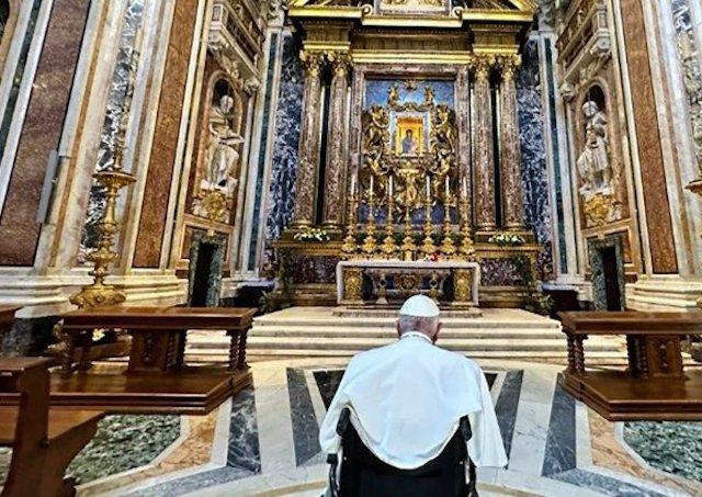 Vatikán 26. apríla (VaticanNews) Pápež zveril Matke Božej apoštolskú cestu do Maďarska. Ako oznámilo Tlačové stredisko Svätej stolice, pápež František sa dnes, v stredu 26. apríla dopoludnia, vydal do rímskej baziliky Santa Maria Maggiore, aby sa pomodlil pred tamojšou mariánskou ikonou Salus Populi Romani a zveril do rúk Matky Božej apoštolskú cestu, na ktorú sa vydá od piatka do nedele.