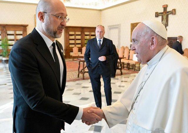 Témou rozhovorov boli rozličné otázky súvisiace s vojnou na Ukrajine a s úsilím o obnovenie mieru. Premiér Šmyhal novinárom povedal, že pápeža pozval do Kyjeva a požiadal ho o pomoc pre ukrajinské deti deportované do Ruska.