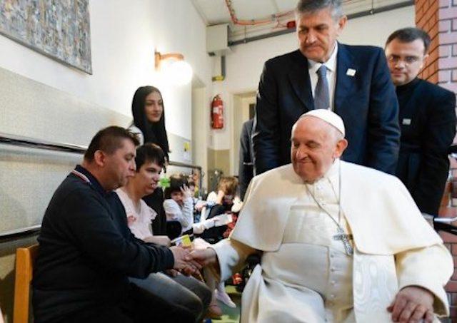 Budapešť 29. apría (VaticanNews) Pápež František dnes dopoludnia navštívil Inštitút blahoslaveného Lászla Batthyányho-Strattmana, v ktorom žijú slabozraké a nevidiace deti a ktorý prevádzkuje školu pre mladých ľudí so špeciálnymi potrebami. Deti privítali pápeža spevom a páter György Inotay, riaditeľ ústavu, otvoril stretnutie modlitbou sv. Františka.