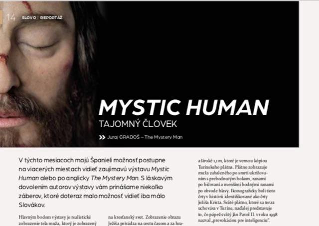 Na titulnej strane čitateľa upúta umučená Ježišova tvár. Fotografia pochádza z výstavy The Mystery Man, ktorá práve prebieha v Španielsku. Šéfredaktor Juraj Gradoš v spolupráci s kurátormi výstavy prináša v reportáži viaceré fotografie, na ktorých sú detailné zábery realistického tela muža z Turínskeho plátna.