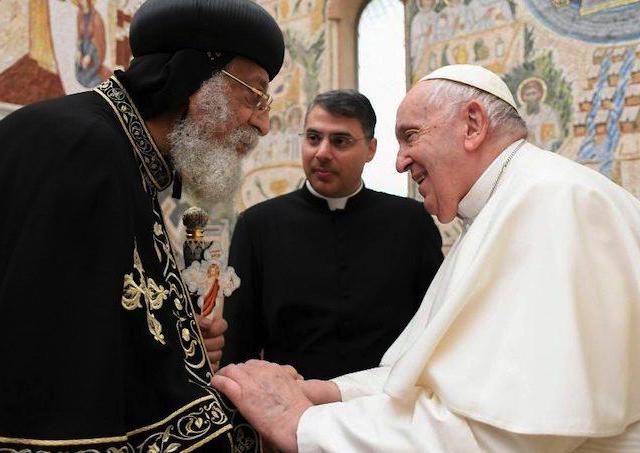 Vatikán 11. mája (VaticanNews) Vo štvrtok 11. mája pokračovala vo Vatikáne návšteva koptského pravoslávneho alexandrijského patriarchu, Jeho Svätosti Tawadra II. Dopoludnia sa konalo súkromné stretnutie v Apoštolskom paláci, ktoré začal súkromný rozhovor koptského pápeža s pápežom Františkom. Nasledovalo predstavenie delegácií, oficiálne príhovory a výmena darov. Stretnutie zavŕšila spoločná ekumenická modlitba v kaplnke Redemptoris Mater. Dvadsaťjeden koptských mučeníkov bude zaradených do rímskeho martyrológia, oznámil František.