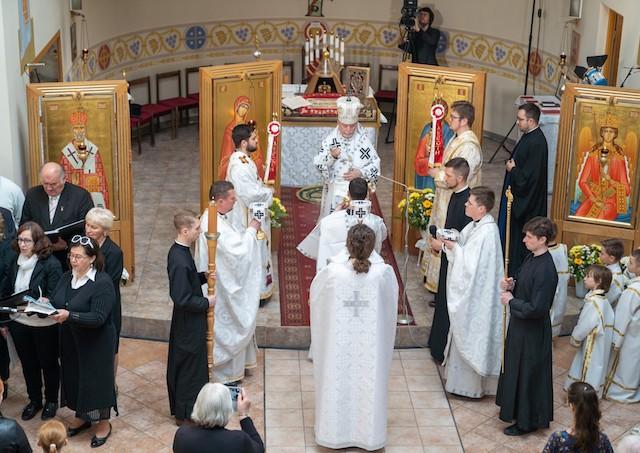 Arcibiskup Vasiľ v homílii vychádzal z nedeľného evanjelia o uzdravení slepého od narodenia. Ako vladyka Cyril zdôraznil, vďaka Ježišovi sa človeku otvára nový svet. Preto nie všetko, čo vnímame ako zlo, musí byť zlom. Všetko v našom živote môže byť prostriedkom zjavenia sa Božej moci. Celej farnosti vladyka zablahoželal k jubileu a pripomenul, že aj jubilujúci chrám Božej múdrosti je zasvätený Múdrosti, ktorá chce sprostredkovávať človeku svetlo Božej pravdy a krásu duchovného sveta.