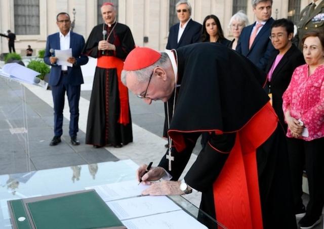 Zhruba 30 laureátov Nobelovej ceny, ktorí sa zúčastnili na vatikánskom podujatí Not Alone v sobotu 10. júna, podpísali na Námestí sv. Petra Deklaráciu o ľudskom bratstve. Dokument, ktorý vypracovali spoločne, podpísal za Svätú stolicu štátny sekretár kardinál Pietro Parolin. Prinášame plné znenie deklarácie: