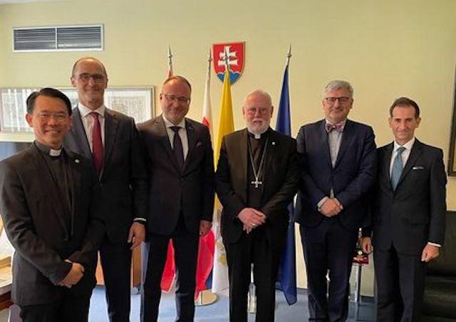 „Na stretnutí vo formáte Slavkov plus, ktorého sa zúčastnili aj Mons. Choong zo Sekcie pre vzťahy so štátmi Štátneho sekretariátu a veľvyslanci Česka, Rakúska a Nemecka pri Svätej stolici sme vo veľmi srdečne a priateľskej atmosfére diskutovali nielen o nedávnej májovej návšteve Mons. P.R. Gallaghera na Slovensku, ale najmä o aktuálnej situácii v Európe a vo svete poznačenej mnohými konfliktami a krízami,“ informuje Slovenské veľvyslanectvo pri Svätej stolici.