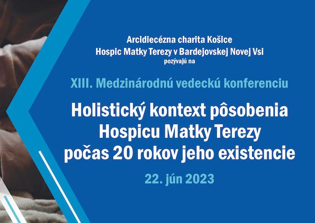 Košice/Bardejov 21. jún (TK KBS) Hospic Matky Terezy v Bardejovskej Novej Vsi, ktorý spravuje Arcidiecézna charita Košice, organizuje vo štvrtok 22. júna v priestoroch Hotela Alexander v poradí XIII. ročník Medzinárodnej vedeckej konferencie. Úplne prvý slovenský hospic si konferenciou s názvom „Holistický kontext pôsobenia Hospicu Matky Terezy počas 20 rokov jeho existencie,“ pripomenie významný míľnik svojej existencie. Konferenciou chcú zdôrazniť dôležitosť činností hospicov a poukázanie na potrebu ústavnej paliatívnej starostlivosti na Slovensku.