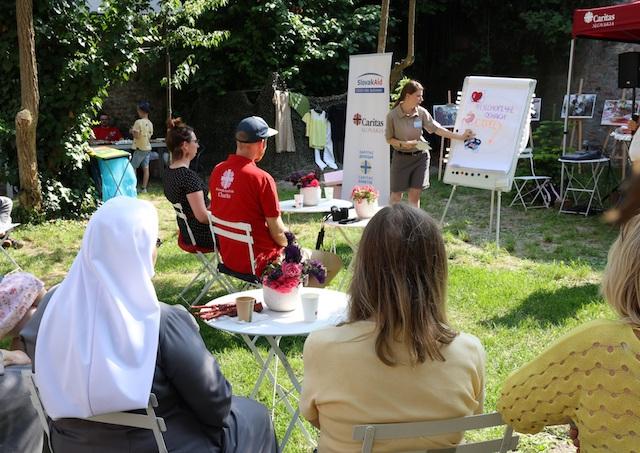 Bratislava 21. júna (TK KBS) Poukázať na problematiku utečencov v zahraničí i na Slovensku bolo cieľom podujatia, ktoré Slovenská katolícka charita zorganizovala k Svetovému dňu utečencov. V charitnej záhrade na Kapitulskej ulici v Bratislave diskutovali v utorok 20. júna ukrajinské humanitárne pracovníčky z Caritas Donetsk o problematike vnútorných vysídlencov na Ukrajine a prostredníctvom interaktívneho workshopu hovorili o zvládaní stresu a záťažových situácií.