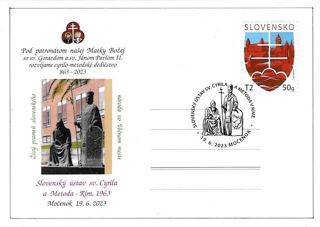 Bratislava/Močenok 22. júna (TK KBS) Pri príležitosti 60. výročia vzniku Slovenského ústavu sv. Cyrila a Metoda v Ríme vydal Klub filatelistov 52-46 Močenok spolu s kňazom Jánom Košiarom a Občianskym združením Cyrilometodiáda príležitostnú poštovú pečiatku a lístok, ktoré sú od 19. do 27. júna 2023 na pošte v Močenku, informoval Jozef Kútny.
