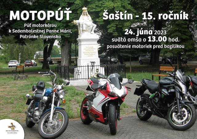 Šaštín 23. júna (TK KBS) V poslednú júnovú sobotu sa v národnej svätyni - v Bazilike Sedembolestnej Panny Márie v Šaštíne - koná špecifická púť motorkárov. Spojená bude aj tentoraz s požehnaním motoriek.