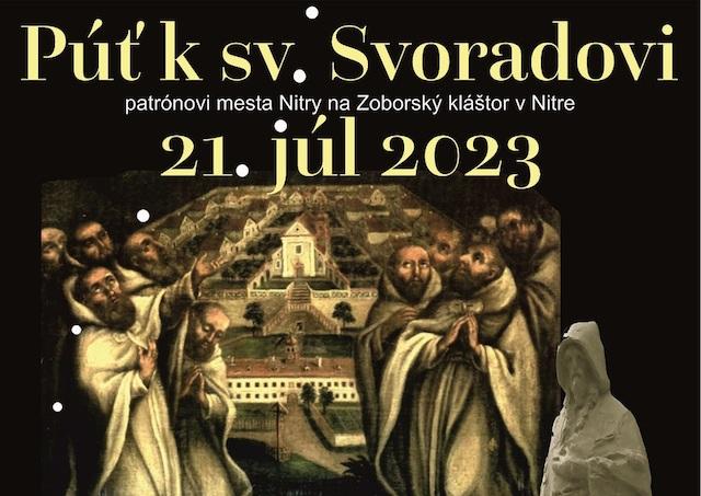 Nitra 27. júna (TK KBS) V piatok 21. júla 2023 sa v Nitre uskutoční tradičná Púť k sv. Svoradovi, patrónovi mesta, na Zoborský kláštor. V rámci programu púte bude na jej začiatku o 17:00 odhalená a požehnaná socha sv. Svorada v parčíku na Predmostí. Následne sa procesia veriacich z mestských farností vydá na pešiu púť popri rieke Nitra a po Kláštorskej ulici k zakonzervovaným ruinám Zoborského kláštora v areáli Špecializovanej nemocnice sv. Svorada.