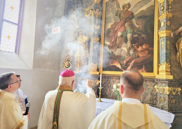 Počas svätej omše biskup požehnal aj obnovený bočný oltár svätého Michala archanjela. Oltár bol zreštaurovaný a inštalovaný na pôvodnom mieste. Slávnostnú svätú omšu sprevádzal miestny farský spevácky zbor Benedicat.