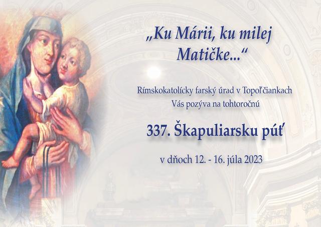 Topoľčianky 10. júla (TK KBS) V poradí už 337. Škapuliarska púť sa uskutoční v dňoch 12. – 16. júla 2023 v Topoľčiankach.