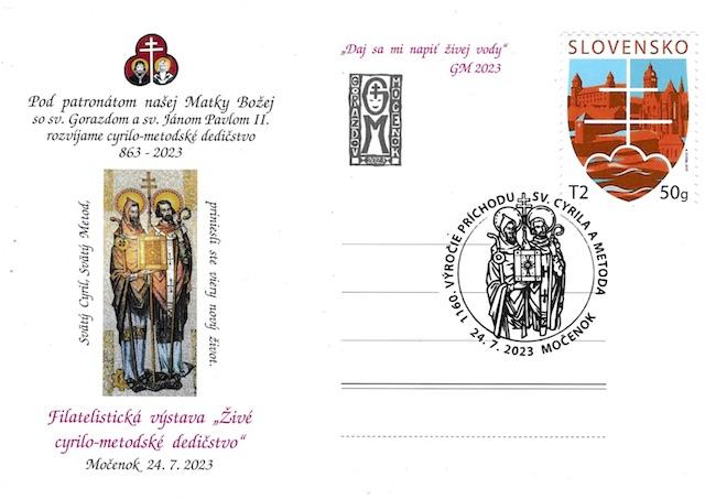 Močenok 14. júla (TK KBS) Pri príležitosti konania 31. ročníka Festivalu kresťanského divadla Gorazdov Močenok vydal Klub filatelistov 52 - 46 Močenok spolu s Farnosťou sv. Klimenta v Močenku príležitostnú poštovú pečiatku a lístok, ktoré budú na pošte v Močenku od 24. júla do 1. augusta 2023.