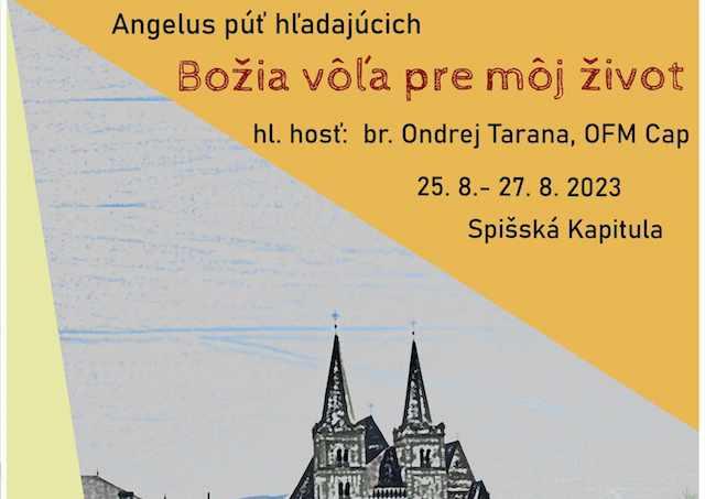 Bratislava 18. júla (TK KBS) Spoločenstvo Angelus chystá ďalší ročník Angelus púte. Najbližšia bude v dňoch 25. - 27. augusta 2023. Témou púte bude "Božia vôľa pre môj život", ktorou bude sprevádzať br. Ondrej Tarana, OFM cap. „Spoločne sa ju budeme snažiť hľadať prostredníctvom putovania, svedectiev, prednášok, modlitby, možnosti duchovného rozhovoru, ale aj voľného programu a priateľskej zábavy," avizuje Tím Angelusu.