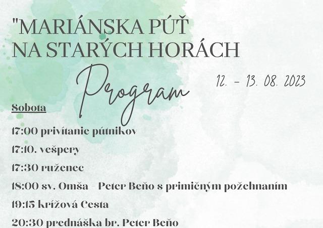 Staré Hory 9. augusta (TK KBS) Bratia bosí karmelitáni zo Starých Hôr pozývajú veriacich na tradičnú mariánsku púť. Uskutoční sa v dňoch 12. a 13. augusta 2023.