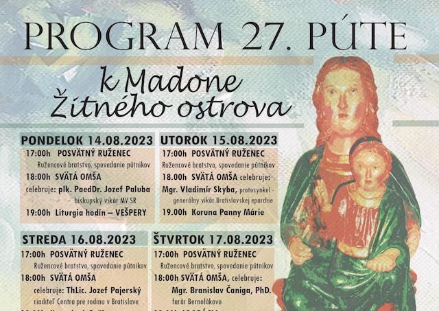 Dunajská Lužná 11. augusta (TK KBS) Bratia dominikáni pozývajú veriacich na XXVII. ročník obnovenej púte k Madone Žitného ostrova, ktorá bude v dňoch 14. – 20. augusta 2023 v Dunajskej Lužnej.