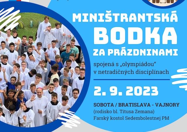 Bratislava 16. augusta (TK KBS) Dať „bodku“ za prázdninami a vyprosiť si požehnanie do nového školské roka. To je cieľom púte miništrantov, na ktorú pozývajú v sobotu 2. septembra 2023 Saleziáni don Bosca s Farnosťou Bratislava - Vajnory. Zaregistrovať sa dá TU. Bližšie informácie poskytne don Jozef Luscoň, SDB (lusko@sdb.sk).
