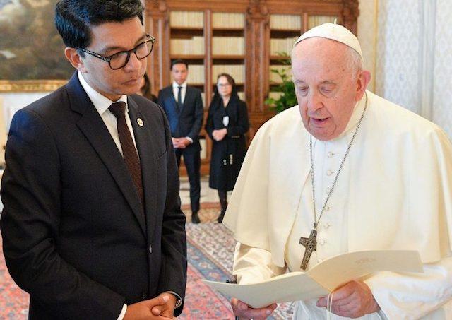 „Počas srdečných rozhovorov na Štátnom sekretariáte bolo vyjadrené uznanie za pozitívne bilaterálne vzťahy, ako aj za prínos Katolíckej cirkvi v mnohých oblastiach madagaskarskej spoločnosti“. V priebehu rozhovoru sa diskutovalo o rôznych vnútroštátnych a medzinárodných otázkach vrátane vojny na Ukrajine a jej globálnych dôsledkov, krízových situáciách, ktoré postihujú africký kontinent, a o možnosti pokračovať v štúdii návrhu bilaterálnej dohody ako ďalšieho prejavu úctivej spolupráce.