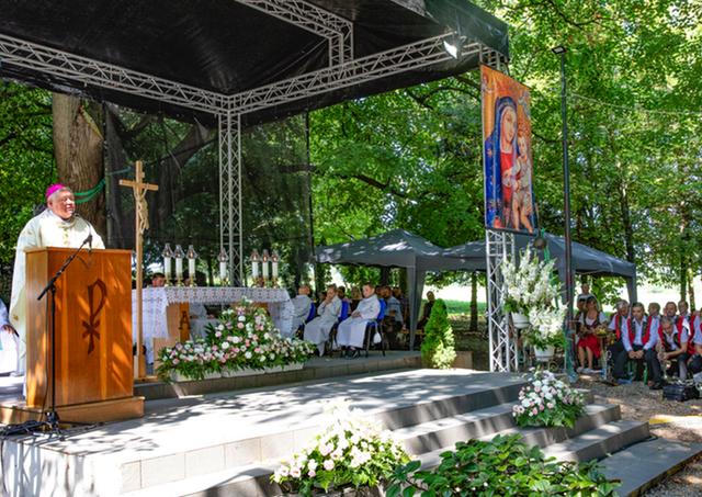 V nedeľu 20. augusta 2023 slávnostnú svätú omšu celebroval nitriansky biskup Mons. Viliam Judák, ktorý vo svojom príhovore pútnikom a veriacim poďakoval za to, že na Studničku prichádzajú a že ju udržujú a budujú. Spolu s nimi uvažoval nad pohnútkami k putovaniu na mariánske pútnické miesta, kde prichádza každý s inou motiváciou, ale predsa spolu, pociťujúc často bezmocnosť a nemohúcnosť v kontakte s rôznymi katastrofami a ťažkosťami života. Ako povedal: „Viesť usporiadaný život a žiť životom čnostného človeka akoby sa dnes už nenosilo. Ak si niečo vyžaduje prinášať obete, sme sklamaní a vzdávame sa, meníme zamestnania i životných partnerov. Bojíme sa prijať záväzok. Slobodu mnohí chápu ako svojvôľu. Veľmi rýchlo rezignujeme, prispôsobujeme sa… veď také sú časy. Ale časy sú také ako ľudia, ktorí ich tvoria. V čom vlastne hľadáme životné šťastie? Čo je naším životným cieľom? Panna Mária nie je poštárka zlosovania šťastných čísel. Mária vie, čo je to žiť ťažkosti každodenného života. Vie pochopiť naše problémy. V očiach Boha máme veľkú cenu. Všetko dobré, čo sme spravili, sa nám započíta. Niečo stojí, keď ideme proti prúdu, ale to nie je to najdôležitejšie, hlavné je nezabudnúť na cieľ. I Mária nedostala korunu na začiatku života, ale na konci, po prekonaní všetkých útrap. Mária chce byť súčasťou nášho života. Ukazuje na Ježiša a vraví nasledujte ho.“