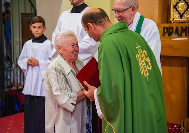 Trenčianske Teplice 12. septembra (TK KBS) Farský kostol sv. Štefana Uhorského, kráľa v Trenčianskych Tepliciach sa 10. septembra 2023 stal miestom, kde kostolníčka Anna Vránková prevzala v závere svätej omše Pamätnú listinu ako výraz ocenenia svojej 30-ročnej vernej služby. Svätú omšu celebroval a ocenenie odovzdal nový miestny farár Marcel Cibík za účasti miestnych veriacich.